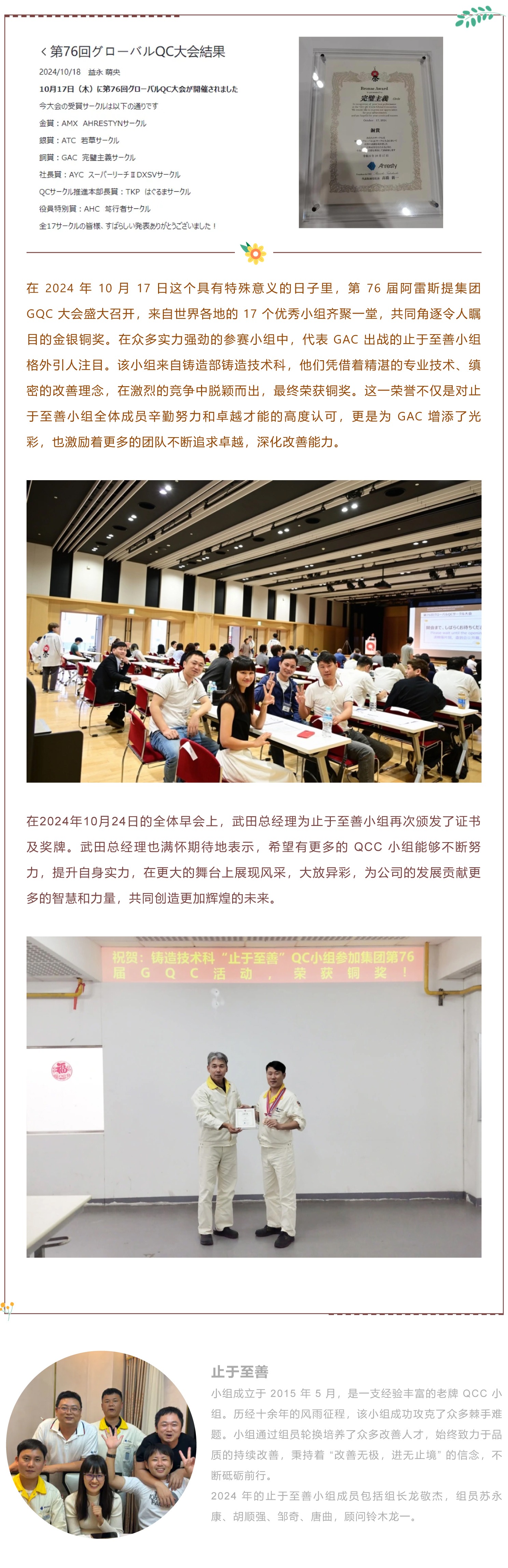 GAC小組榮獲集團GQC大賽銅獎